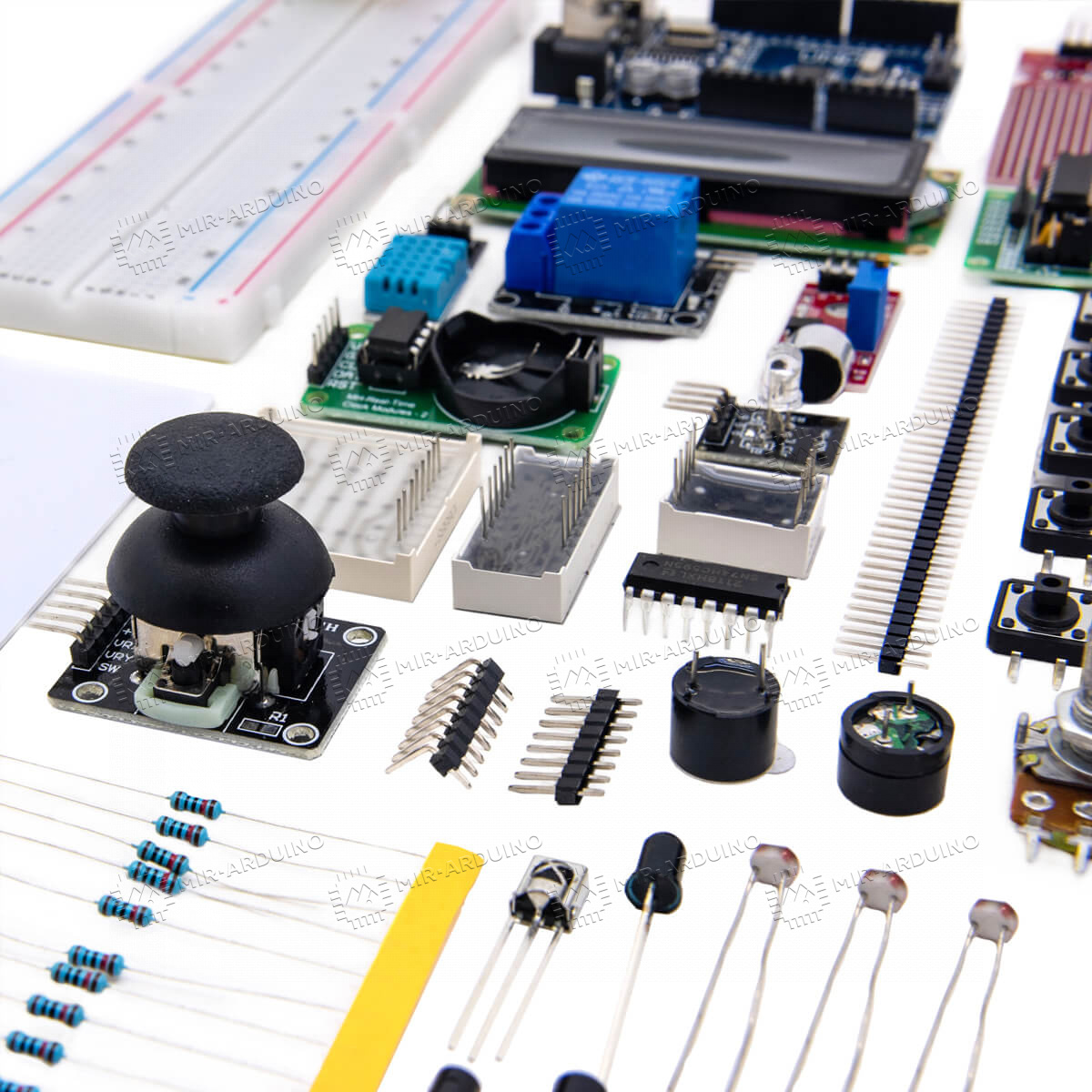 Классный комплект. Много всяких элементов, упаковано все добротно. Заказывала для сына, он хочет после школы на программиста идти. Теперь целыми днями сидит, мастерит свои схемы.